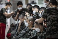해병대교육훈련단 홈페이지에 소개된 신병 1283기 1교육대 극기주 천자봉 정복 기념 소대별 단체사진입니다.