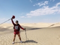 해병대연평부대 유동현 병장이 아프리카 남서부 나미비아에서 열린 제12회 사하라 사막 마라톤 대회 레이스 중 손을 들어 보이고 있다. 부대 제공