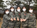 소아암 환자를 위해 수년간 기른 자신의 머리카락을 기증한 해병대2사단 노영주 중사, 기도혜·이민아 대위, 정선희 중위, 최수지 중사(왼쪽부터)가 포즈를 취하고 있다. 부대 제공
