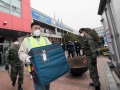 24일 SK바이오사이언스 안동공장에서 출하된 아스트라제네카 백신을 실은 차량이 경기도 이천 대형물류센터에 도착하자 군 장병들이 철통 같은 경계를 펼치고 있다. 백신은 전국 각지의 보건소와 요양병원으로 순차적으로 운송된다. 사진 국방일보 이경원 기자